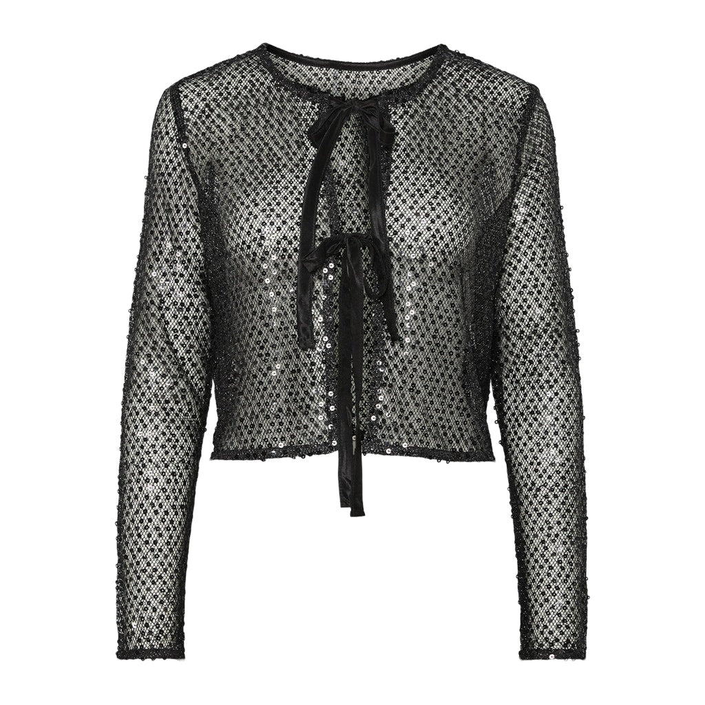 Elegant cardigan med pailetter. Black Friday tilbud. Denne sorte cardigan fra PIECES. PCRISSI – Black Black sequins. Er et must-have for den stilbevidste kvinde