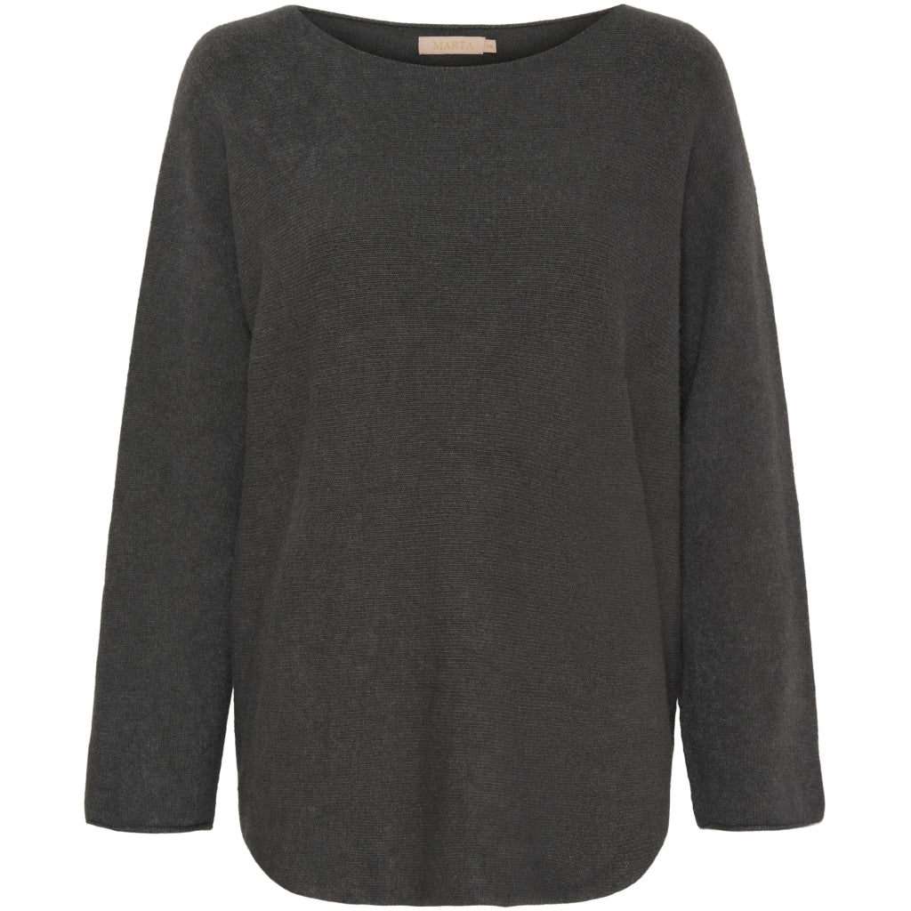 Elegant mørkegrå bådhals striktrøje fra Marta Du Chateau er et must-have for den stilbevidste kvinde. Denne trøje kombinerer elegance og komfort. Hvilket gør den ideel til både hverdag og fest.