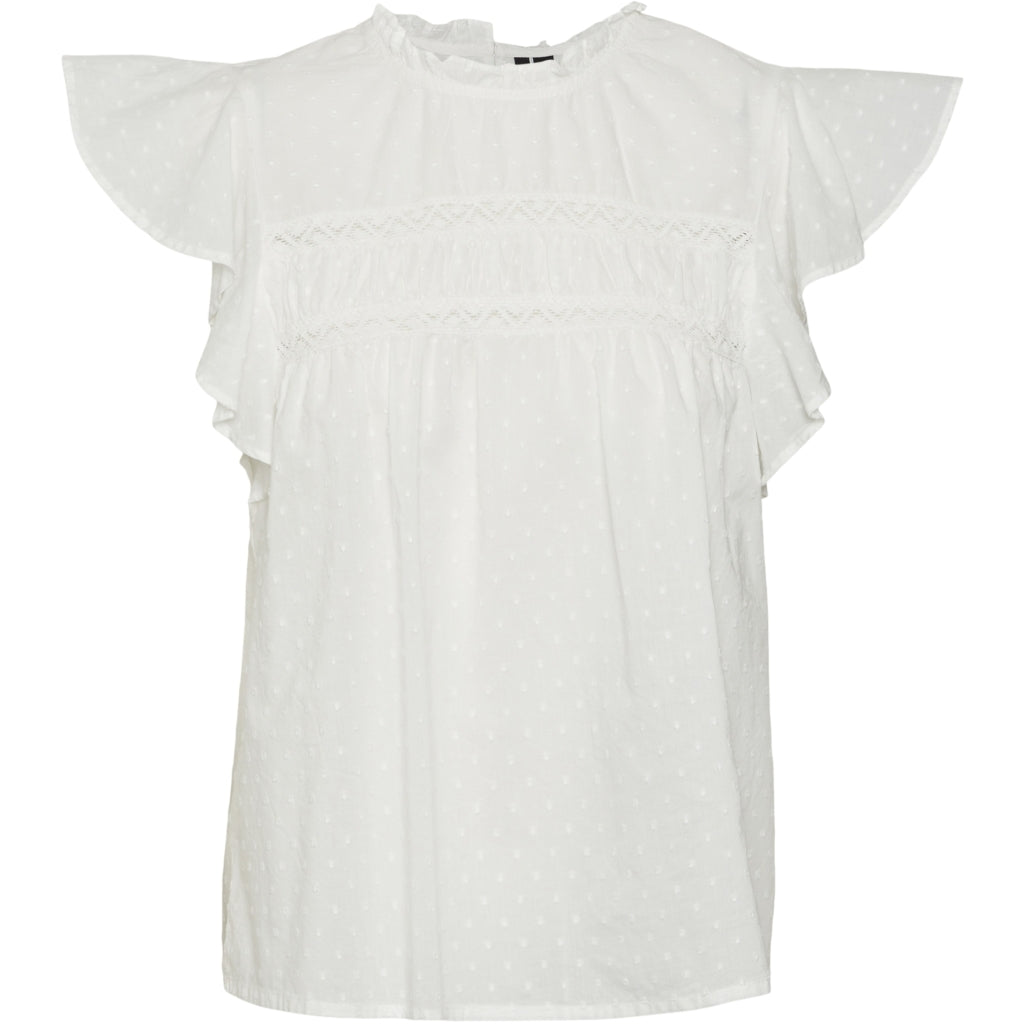 Elegant snehvid VERO MODA VMTRINE bluse er et uundgåeligt valg til din garderobe. Denne bluse kombinerer stil og komfort. Hvilket gør den velegnet til både festlige lejligheder og hverdagsbrug.