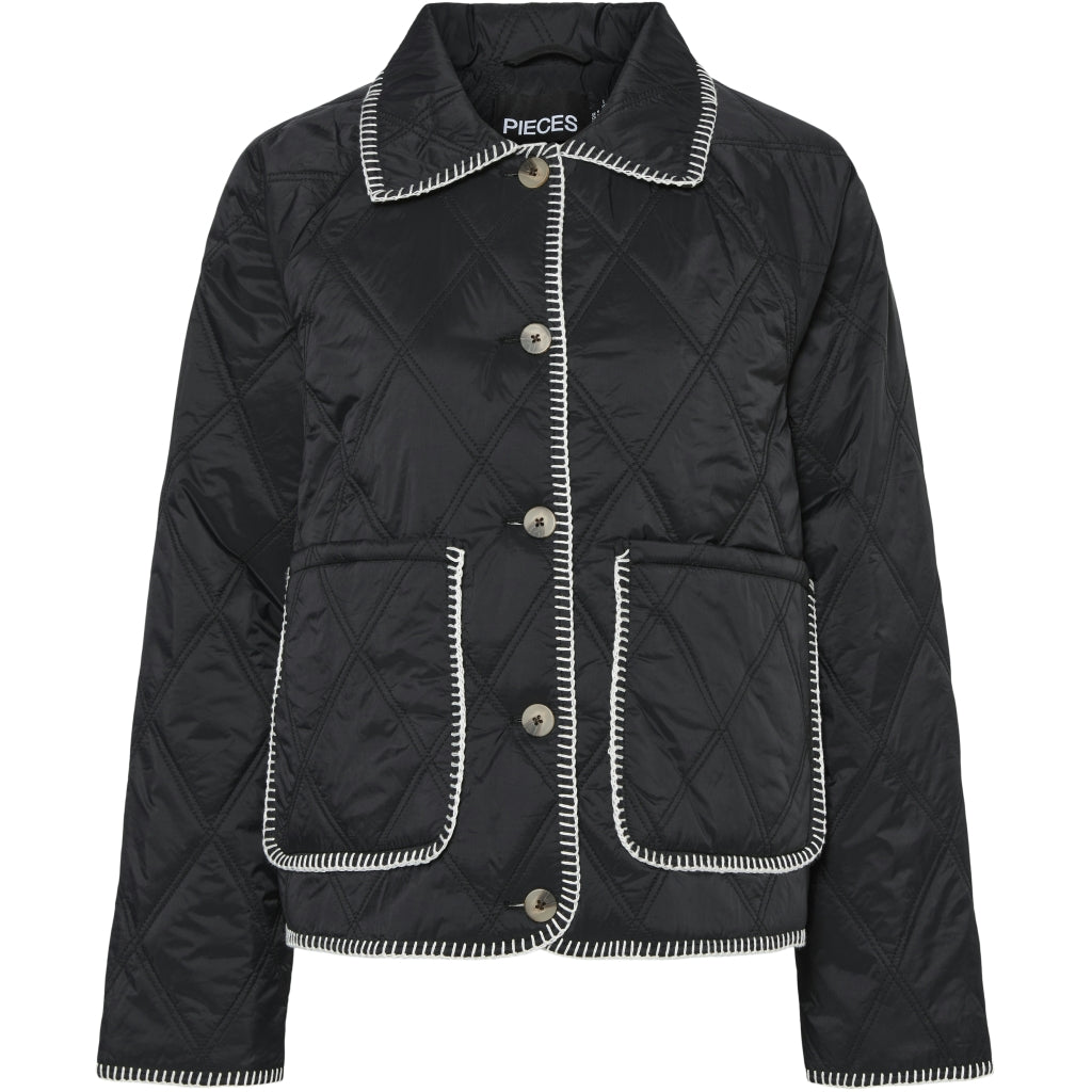 Elegant sort kviltet damejakke fra PIECES er uundgåelig for den modebevidste kvinde. Denne jakke kombinerer stil og funktionalitet på en imponerende måde