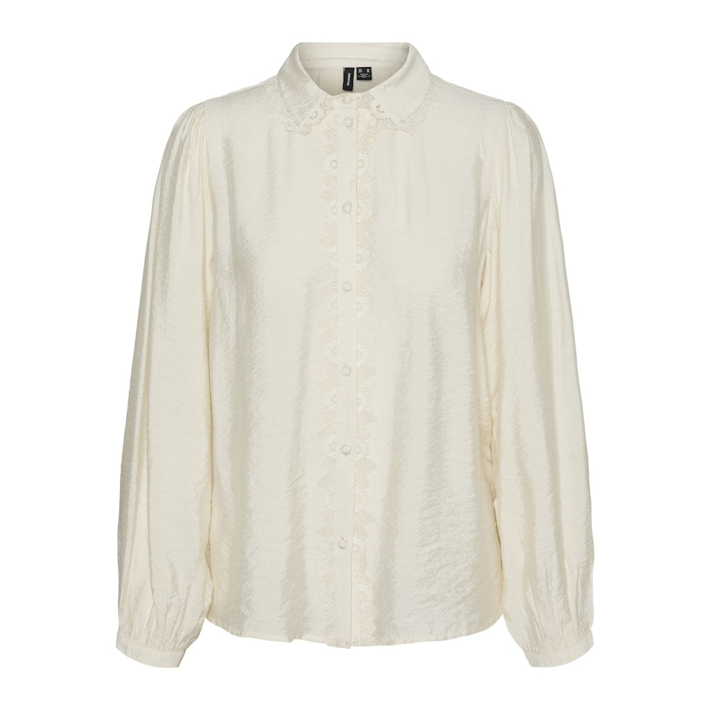 VERO MODA VMGINA Skjorte med Blondekant er et essentielt tilføjelse til din garderobe. Denne skjorte forener elegance med komfort. Hvilket gør den perfekt til både hverdag og fest