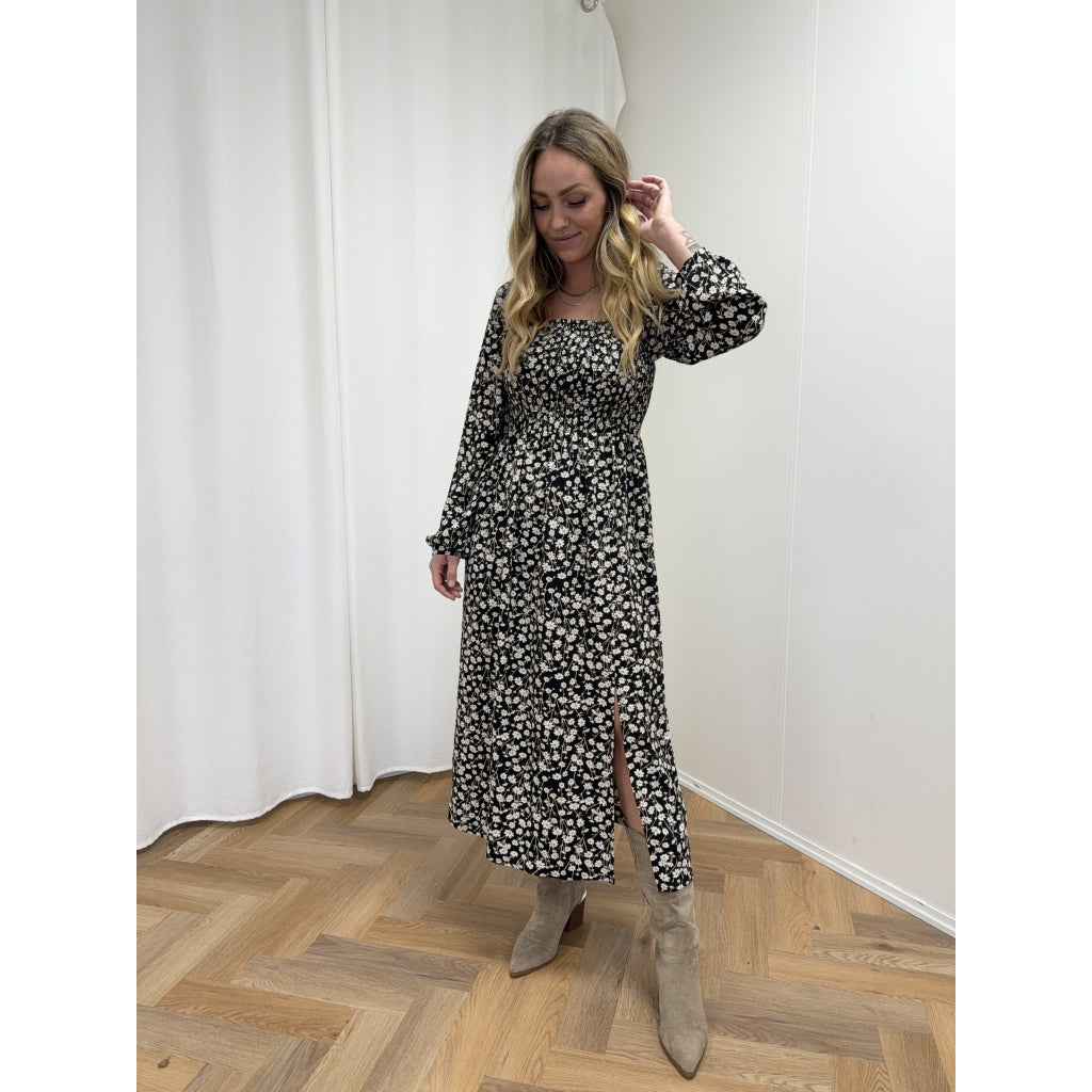 Liberté GRO Kjole. Sort med Creme Blomsterprint er et must-have i din garderobe. Denne kjole forener elegance med moderne stil. Ideel til både hverdag og fest.