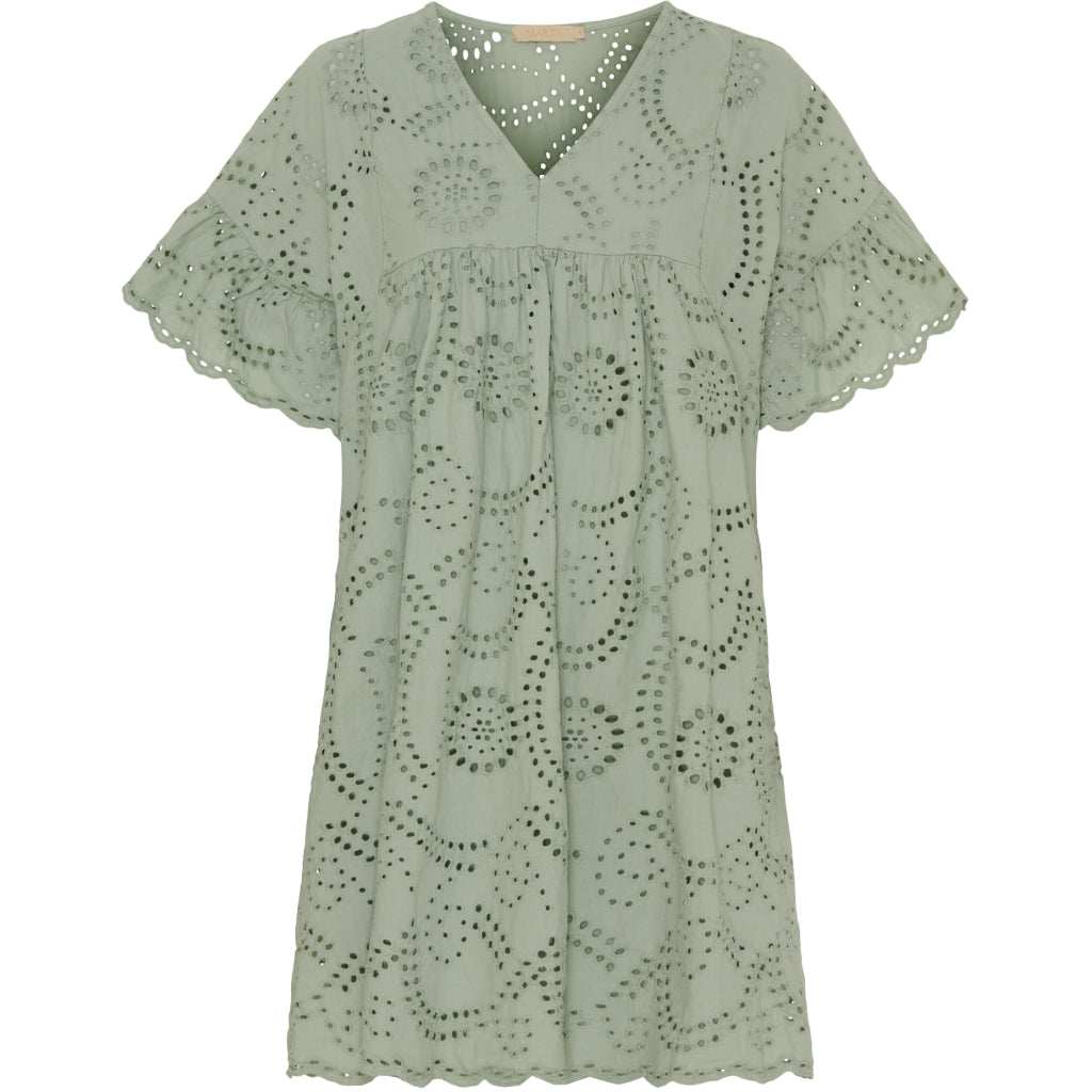 Marta Du Chateau Broderie Anglaise Kjole. Militærstil er et must-have for den stilbevidste kvinde. Denne kjole forener elegance med komfort. Hvilket gør den velegnet til både hverdagsbrug og festlige anledninger