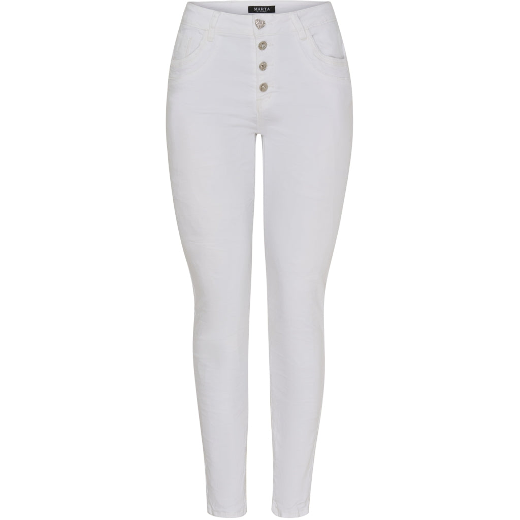 Marta Du Chateau Emma 2563-11 damejeans. Et fantastisk valg til den stilbevidste kvinde. Disse hvide jeans kombinerer komfort og elegance. Hvilket gør dem ideelle til både hverdag og fest.