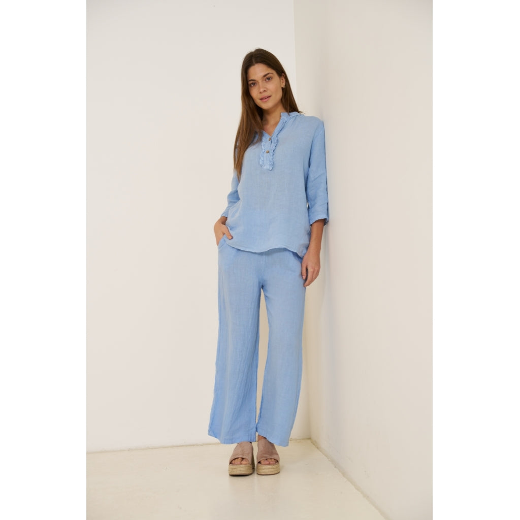 Marta Du Chateau flæse skjorte. Celeste2389 er på udsalg og en essentiel tilføjelse til din garderobe. Denne hørbluse kombinerer stil og komfort. Perfekt til både hverdag og fest.