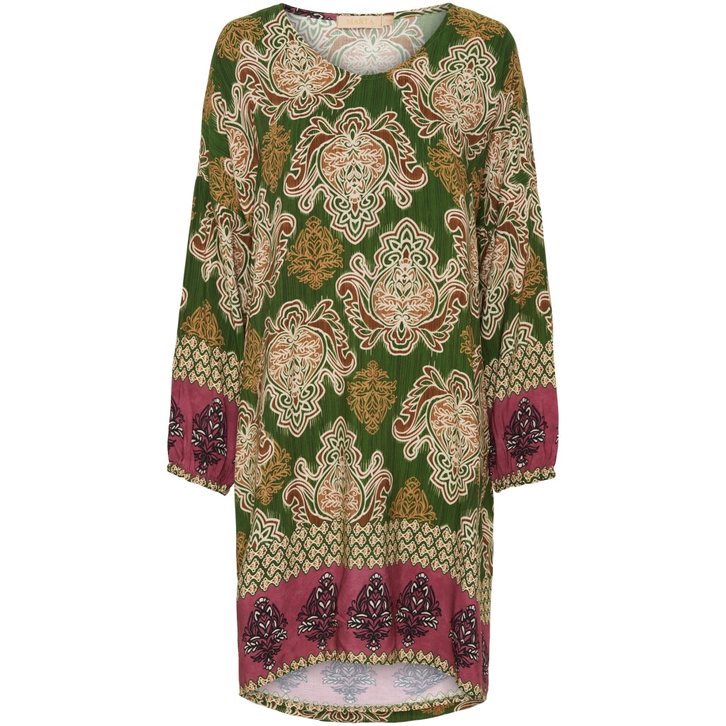 Marta Du Chateau Kjole 5082. Kaki/Beige er en essentiel tilføjelse til enhver modebevidst kvindes garderobe. Denne kjole forener elegance og komfort. Hvilket gør den perfekt til både festlige anledninger og hverdagsbrug.
