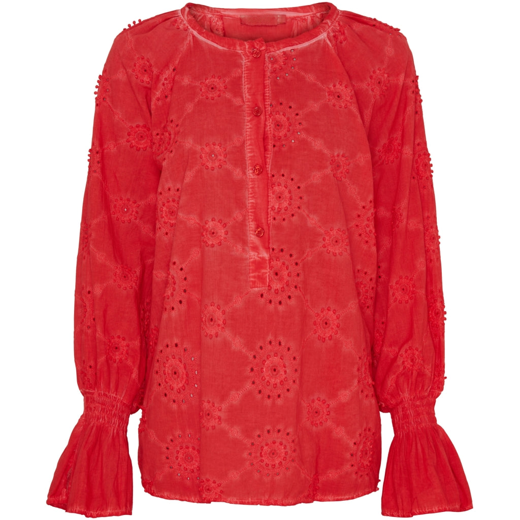 Marta Du Chateau MdcBianca Bluse. Rød med Broderi er et must-have i din garderobe. Denne bluse forener stil og komfort. Hvilket gør den ideel til både hverdag og fest.