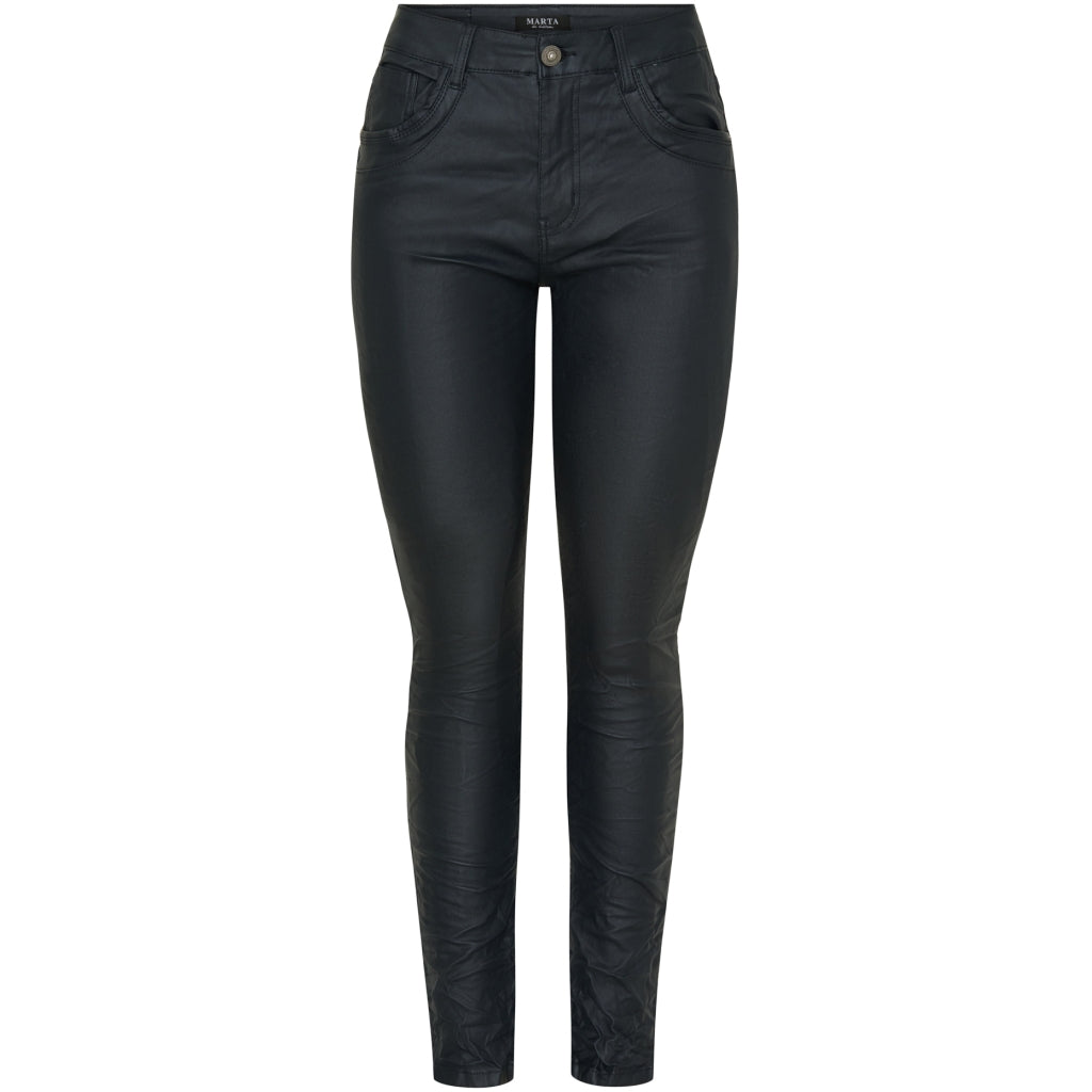 Marta du Château PU-look bukser. Navy er et must-have for den stilbevidste kvinde. Der ønsker både komfort og elegance. Disse bukser passer perfekt til enhver lejlighed. Fra hverdagsbrug til fest.