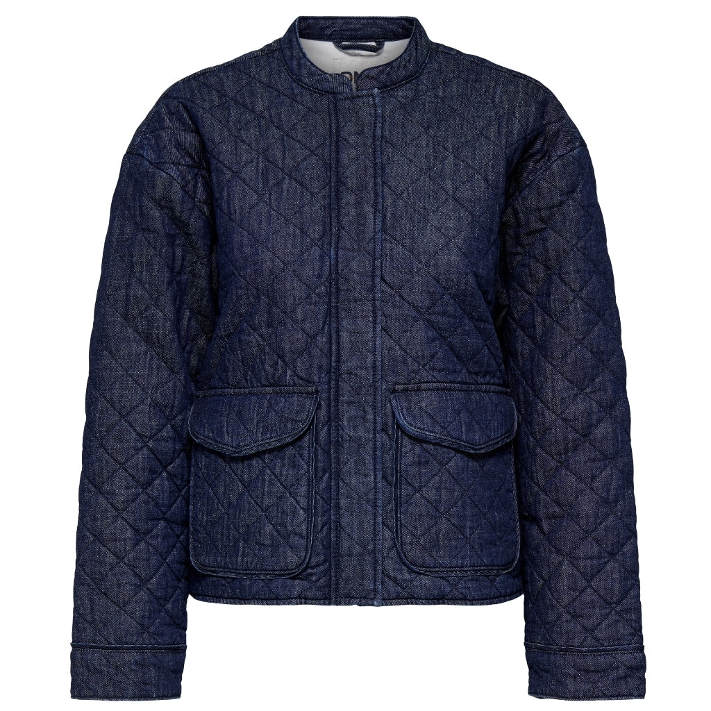 ONLY Denimjakke ONLHALLIE. Mørkeblå er den perfekte tilføjelse til din forårsgarderobe. Denne jakke forener stil og funktionalitet på en elegant måde
