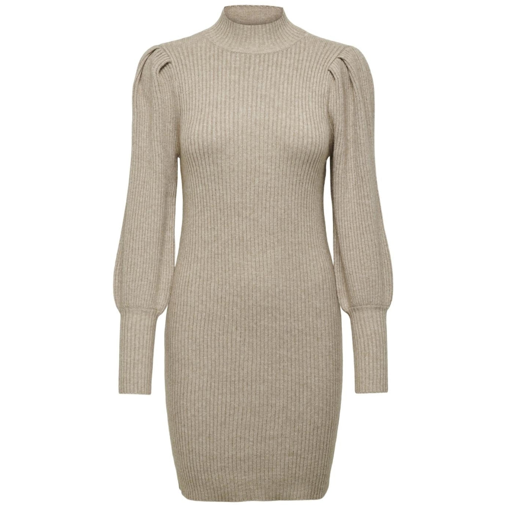 ONLY Strikkjole ONLKATIA. Mocha Meringue er et must-have til din garderobe. Denne kjole forener stil og komfort. Hvilket gør den perfekt til både hverdag og fest.