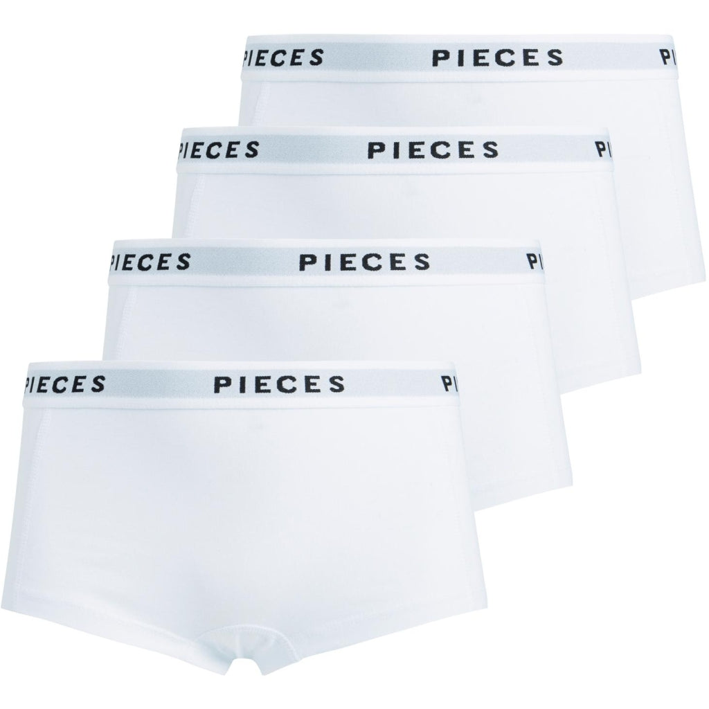 Pieces Dame Hipsters PCLOGO 4-PACK. Hvidt er et must-have i din undertøjsgarderobe. Disse hipsters kombinerer komfort og stil. Perfekt til daglig brug.