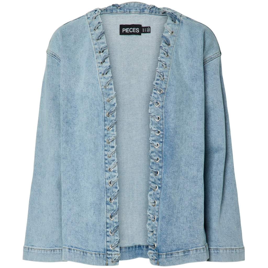 PIECES damejakke PCFENDA i lys blå denim er et must-have for den modebevidste kvinde. Der ønsker, at kombinere stil og komfort