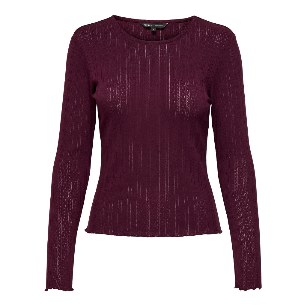 Sød langærmet ONLY t-shirt til enhver anledning. Et must-have i din garderobe. Denne Dame Top ONLCARLOTTA – Vinetasting kombinerer stil og komfort. Perfekt til både hverdag og fest.