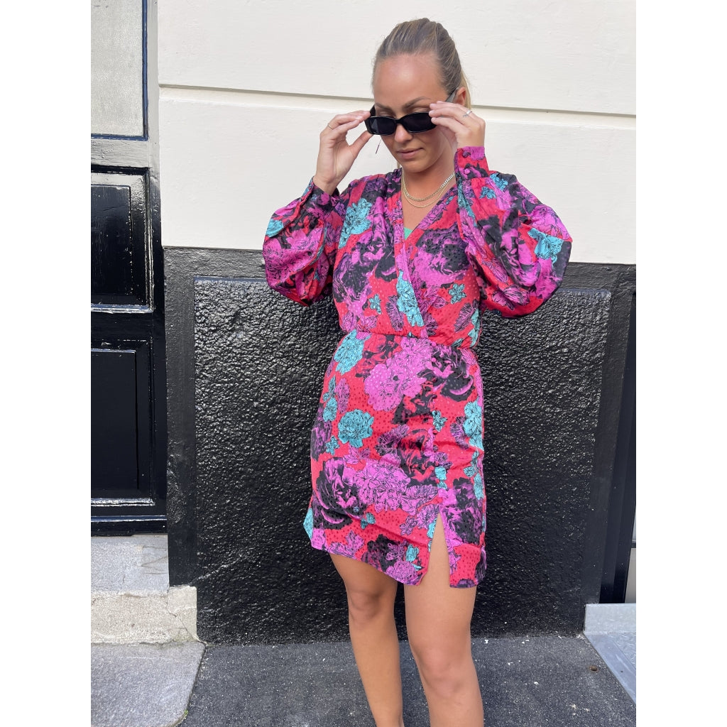 Vero Moda Slå Om Kjole VMSALMA. Flammende Rød er et must-have til din sommergarderobe. Denne kjole kombinerer stil og komfort. Hvilket gør den ideel til både hverdag og fest.